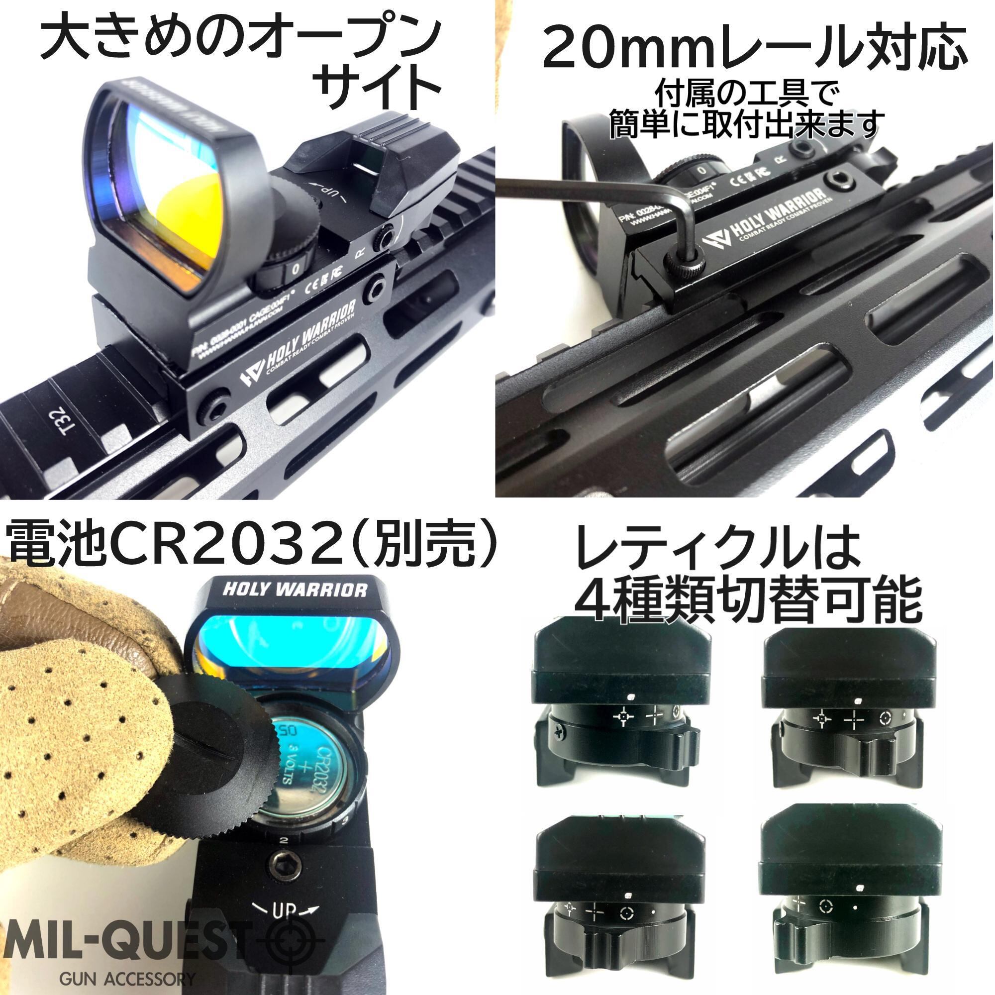 Holy Warrior製 オープンドットサイト リフレックスサイト 4レティクル 金属製 20mmレール対応