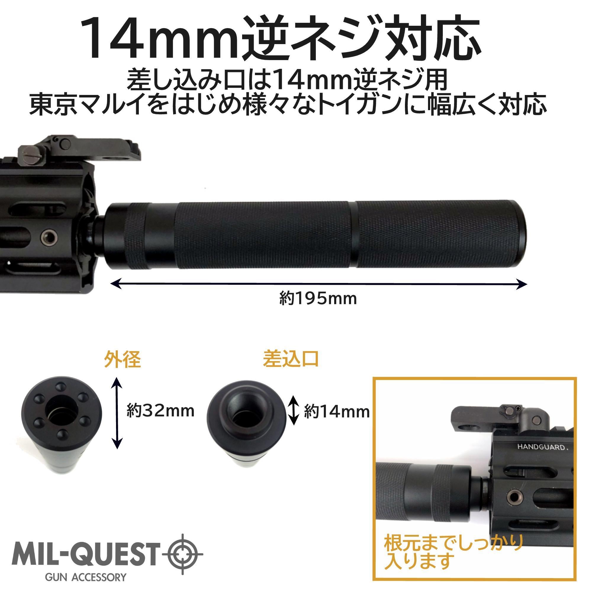 ロングサイレンサー サプレッサー 14mm逆ネジ対応 全長195mm 外径32mm アルマイト加工 Bタイプ 2010