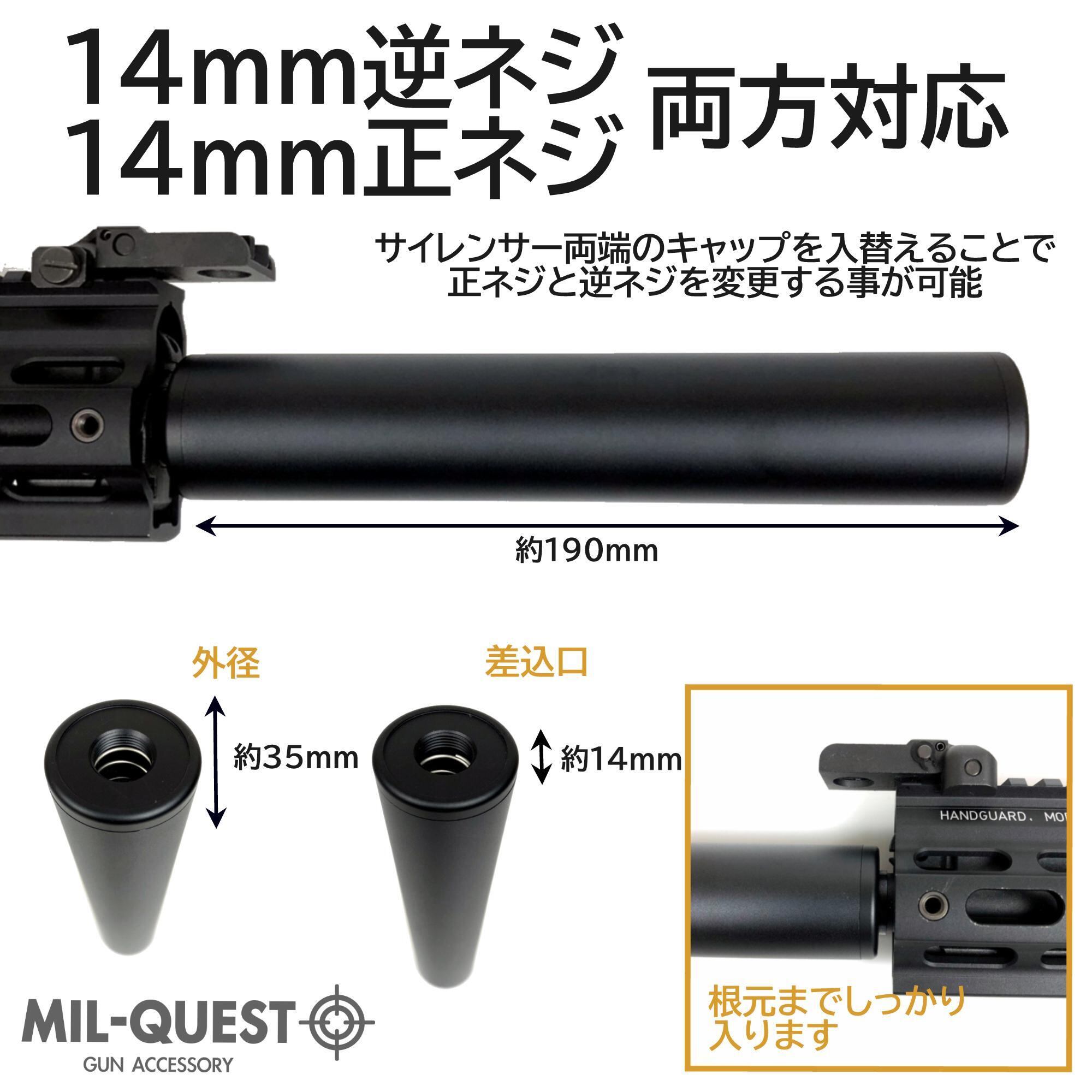 ロングサイレンサー サプレッサー 14mm逆ネジ 正ネジ両方対応 アルマイト加工 全長190mm 外径35mm 2018