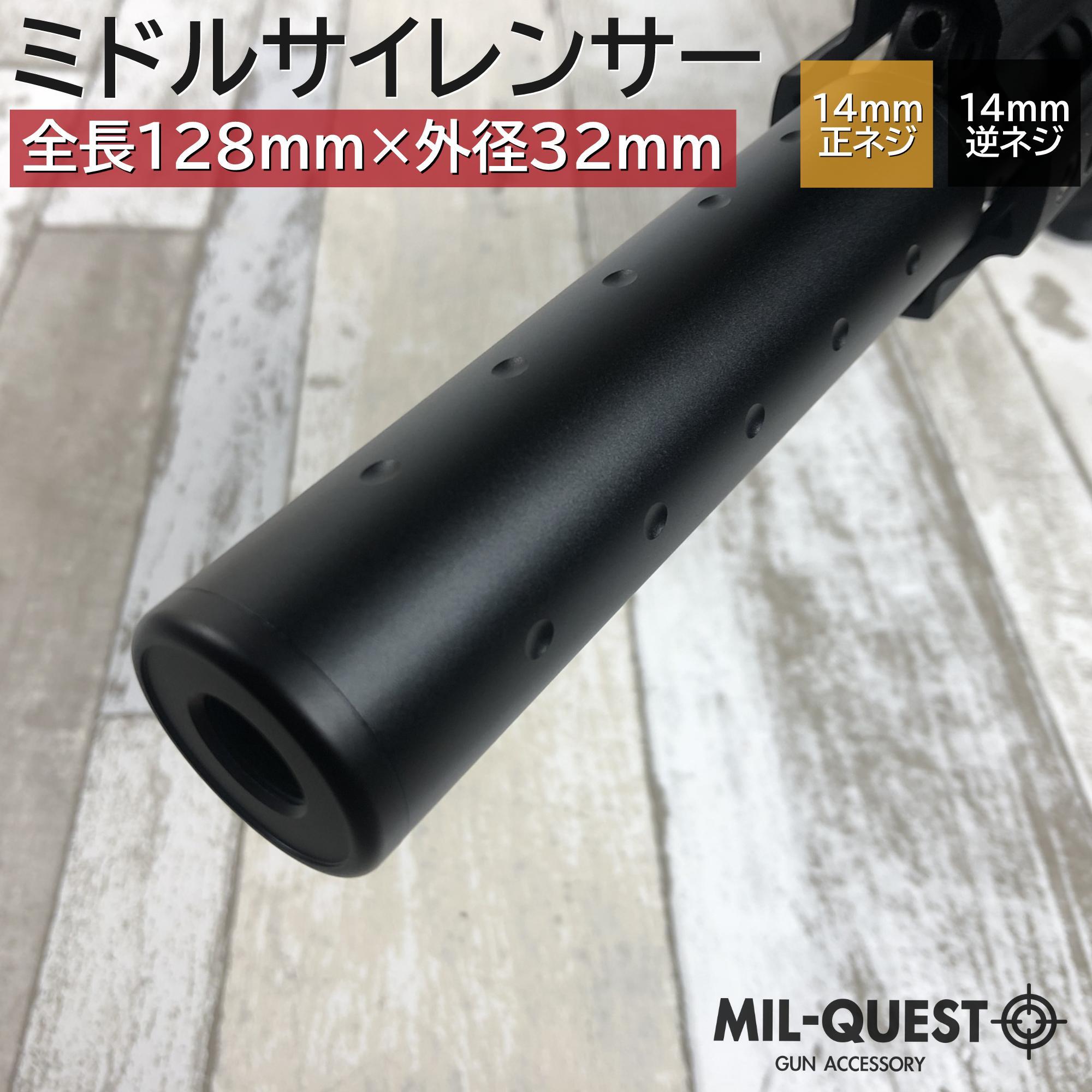 サイレンサー 14mm逆ネジ 14mm正ネジ両方対応 ミドルサプレッサー SKULL 全長128mm 外径32mm アルマイト加工