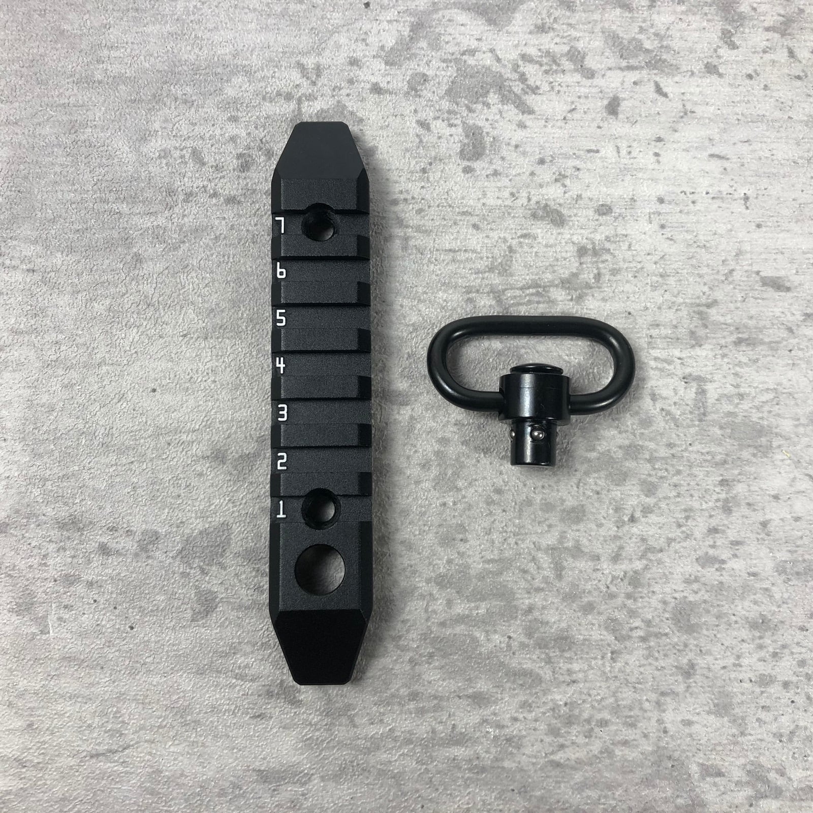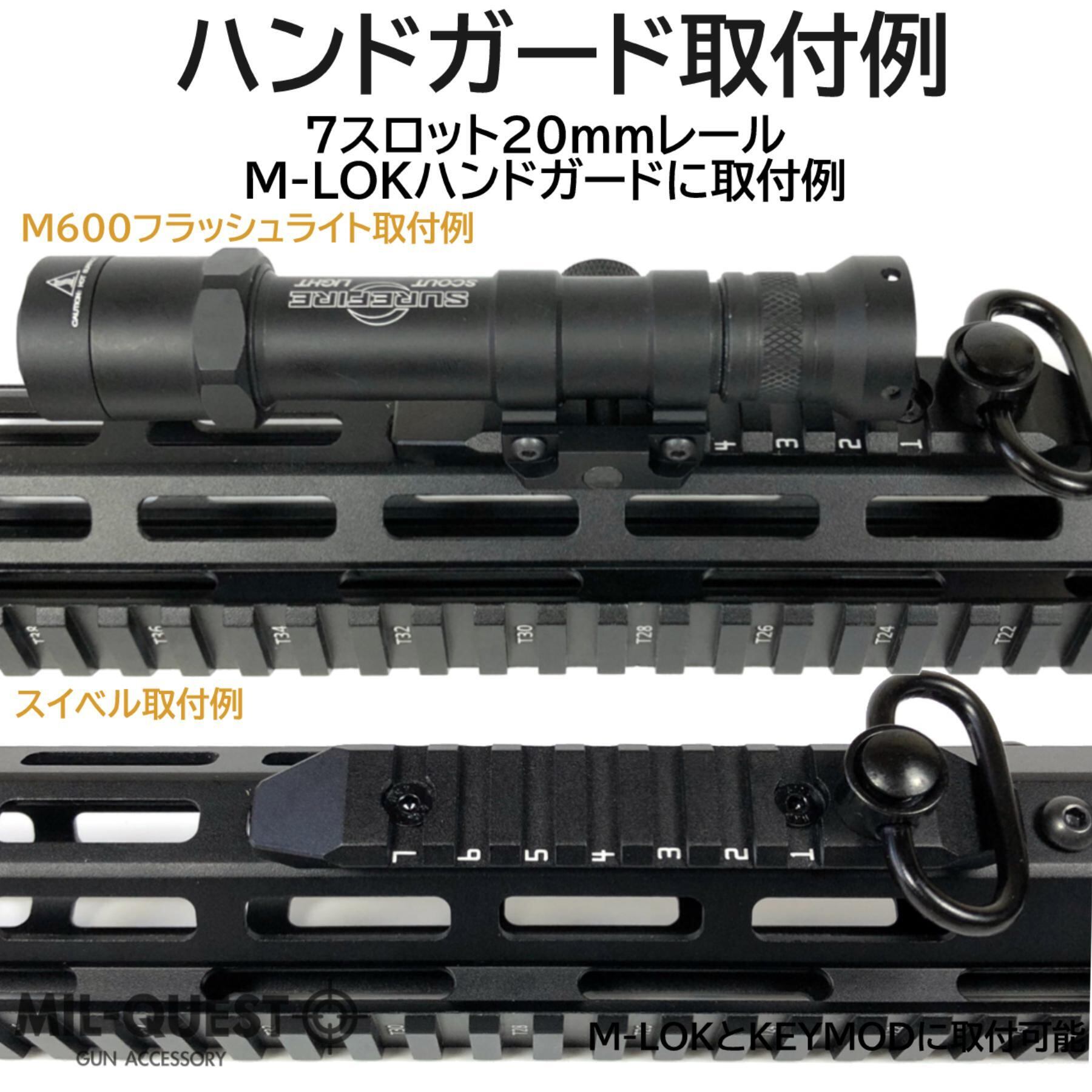 M-LOK KEYMOD兼用 金属製 20mmレール 7スロット QDスイベル付き 数字刻印有