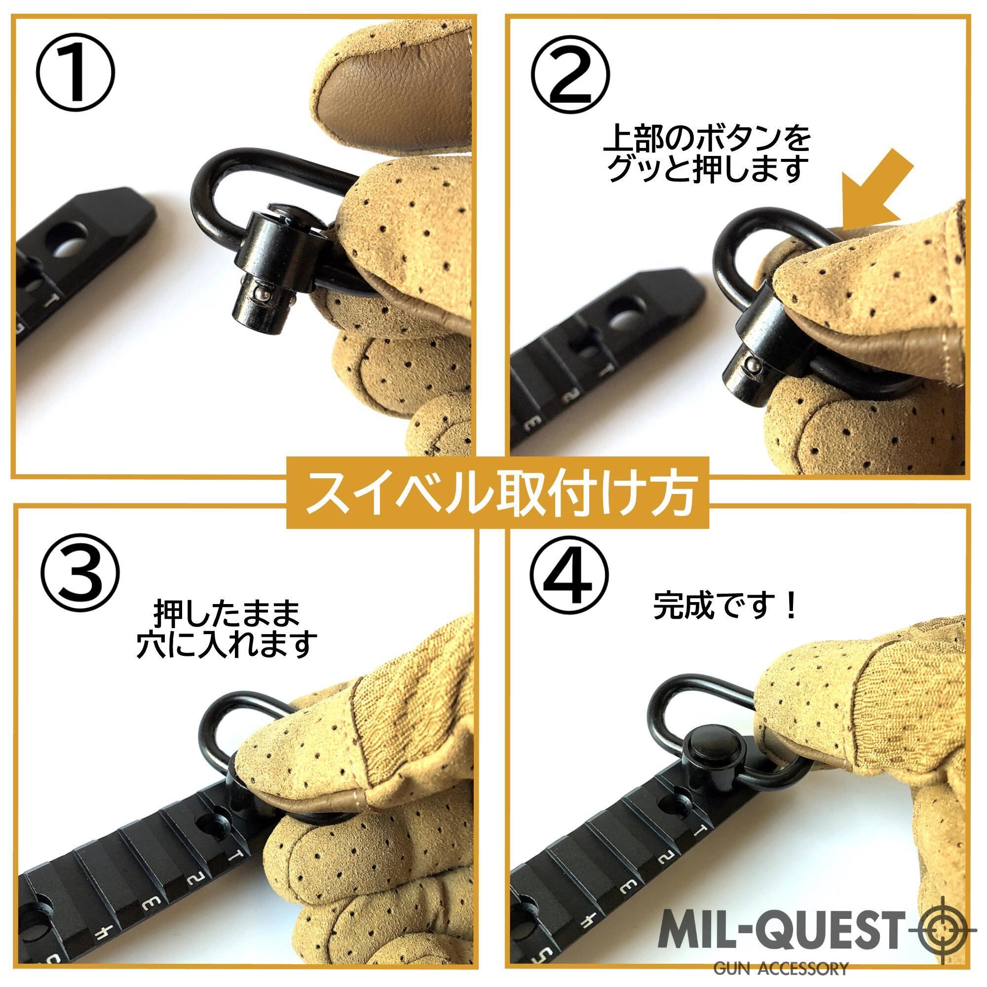 スイベルの取外しが簡単なので、サバゲーやコンディションによって外したりつけたり手軽に変更できます!!