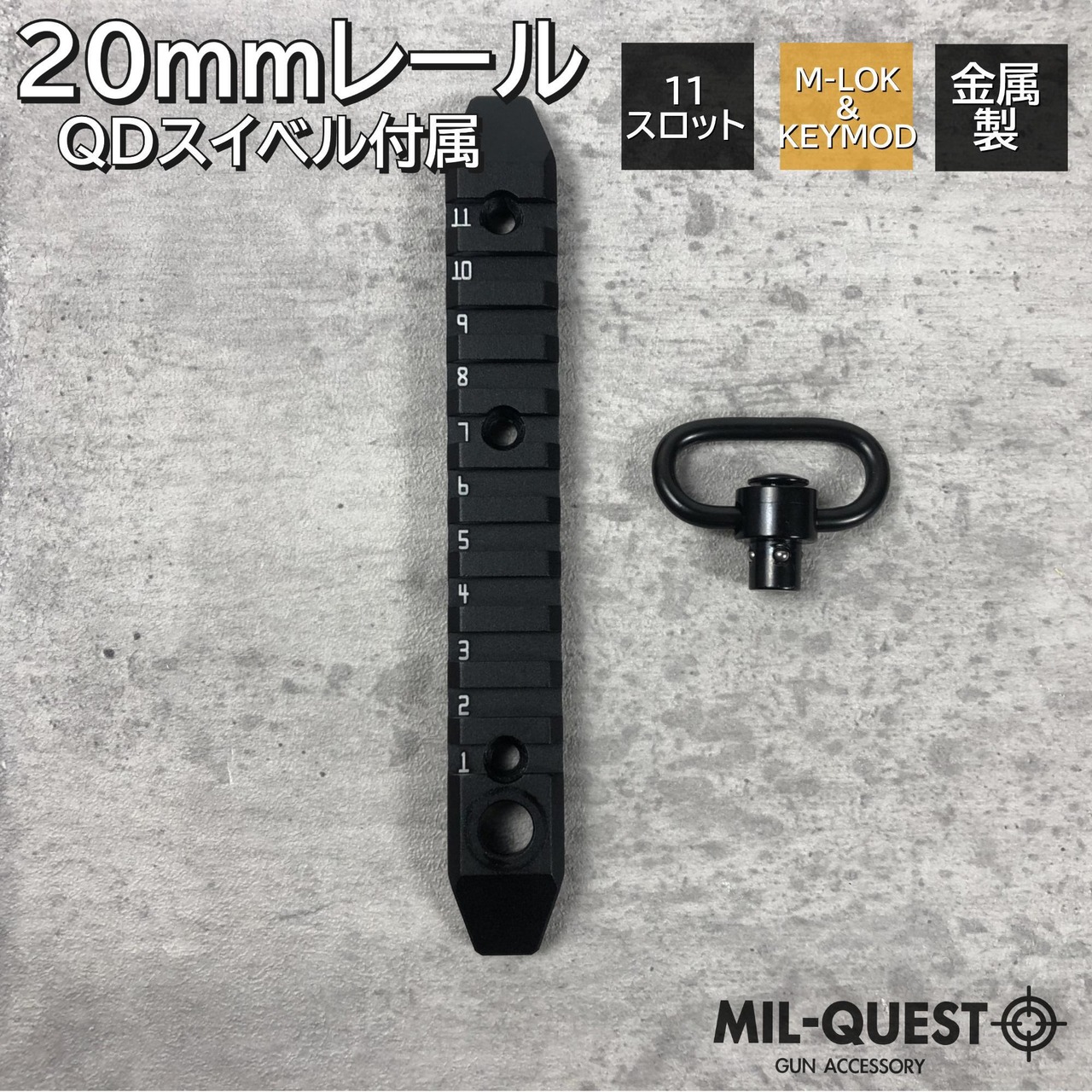 M-LOK KEYMOD兼用 金属製 20mmレール 11スロット QDスイベル付き 数字刻印有